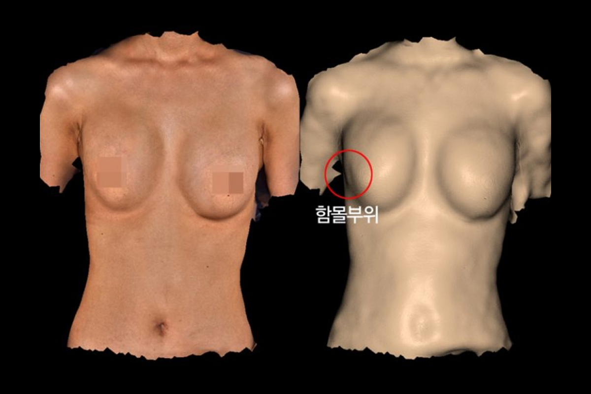 빠르고 편리한 3D 프로그램(LifeViz)을 활용해 상태를 보다 정확하고 세밀하게 확인합니다. 3차원 입체 촬영으로 다양한 각도에서 관찰할 수 있으며, 육안으로 확인이 어려운 가슴 함몰 부위와 깊이도 촬영 이미지로 확인해 시술 계획에 활용합니다.