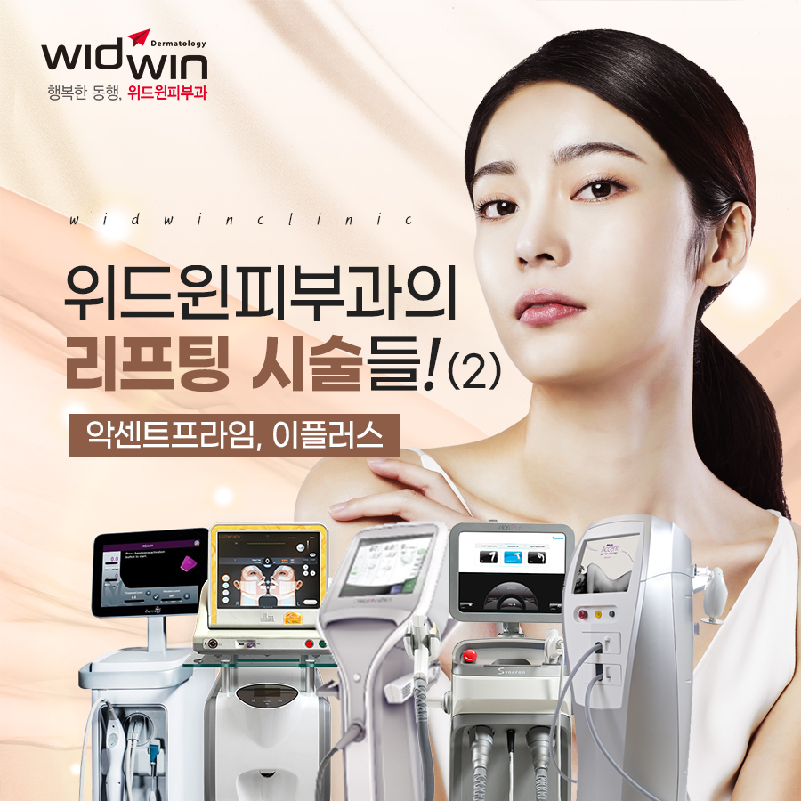 이번에는 지난편에서 다루지 못한 위드윈의 인기 리프팅시술, 이플러스레이저 와 악센트프라임 에 대해 알아보도록 하겠습니다.