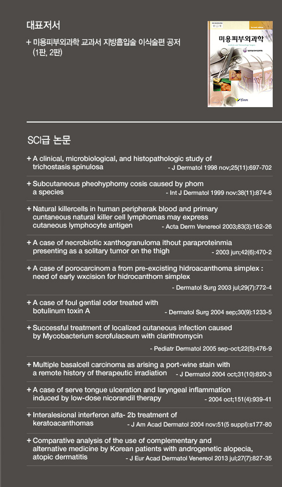 수많은 임상 경험에 안주하지 않고, 국내외 학회와 연구 활동을 통해 피부 변화의 근거를 끊임없이 업데이트합니다. 축적된 시간과 경험을 바탕으로, 한 분 한 분의 피부를 더 깊이 이해하려는 진료를 이어갑니다.