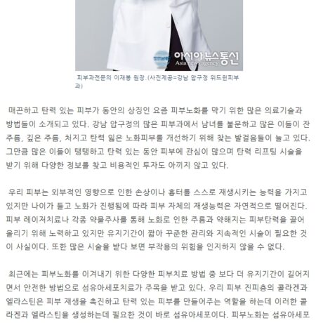 [아시아뉴스통신] 피부노화, 세포치료로 안티에이징 하기